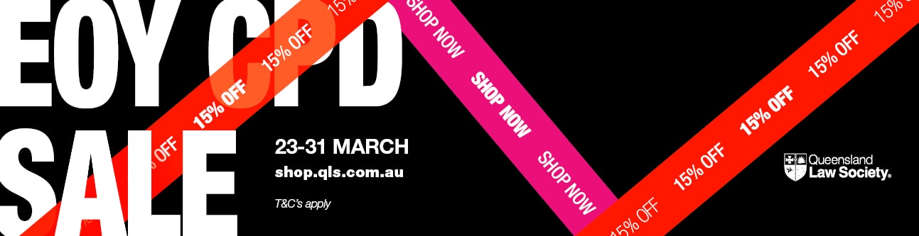 Don't miss out. The End of Year CPD Sale ends 11.59pm, Tuesday 31 March and is not in conjunction with any other offer. Purchase Terms and Conditions apply. View the QLS Shop EOY CPD Sale FAQs for more information.